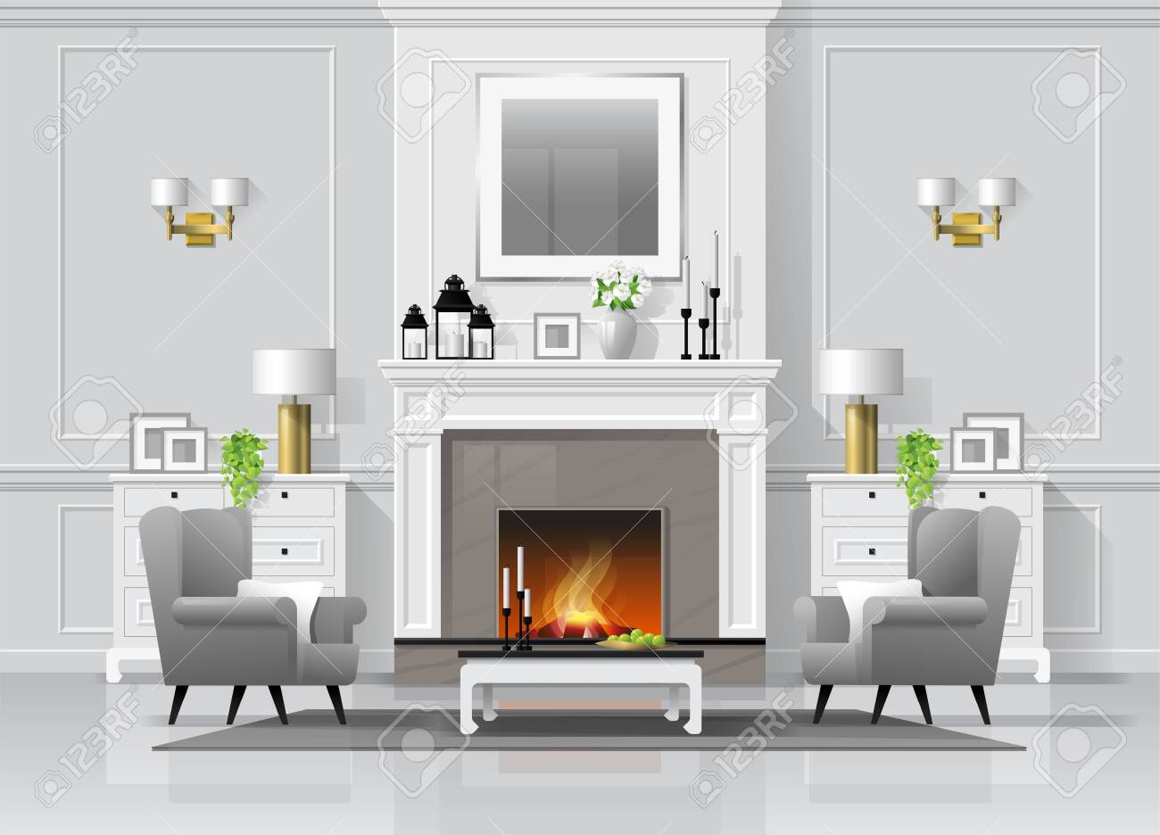 View Living Room With Fireplace Clipart Images. Vector luxury living room with fireplace. Browse living room decorating ideas and furniture layouts.